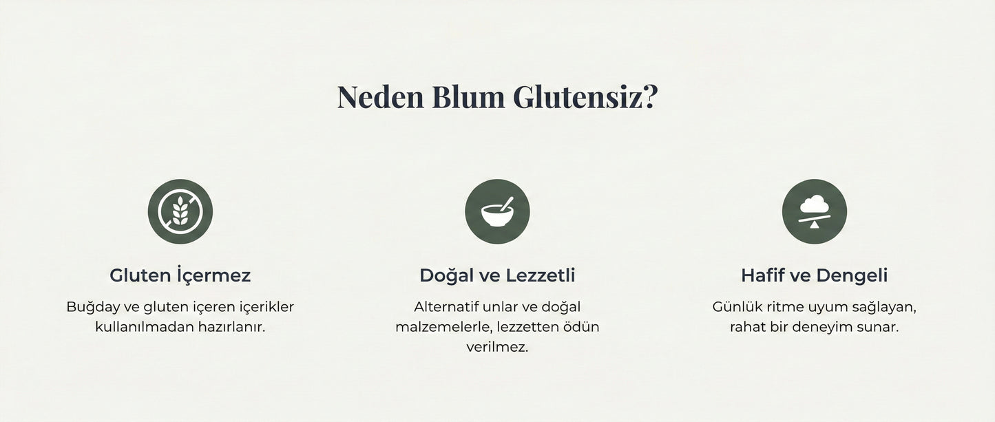 Gluten içermeyen içeriklerle hazırlanan bu koleksiyon, lezzetten ödün vermeden daha dengeli bir alternatif arayanlar için tasarlandı. Doğal malzemelerle, küçük dokunuşlarla hazırlanan ürünlerimiz; hafif dokusu ve sade aromalarıyla öne çıkar. Günlük rutine uyum sağlayan, rahat bir mola için.