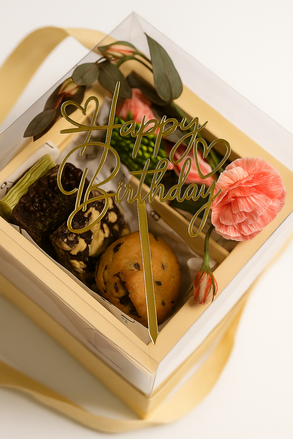 Kutlama anlarını daha anlamlı kılan zarif bir hediye seçeneği: Happy Birthday Box, Blum’un en sevilen glutensiz tatlılarını bir araya getirir. Özel akrilik kutusu ve mevsim çiçeğiyle tamamlanan bu kutu, doğum günü kutlamalarına doğal, şık ve lezzetli bir dokunuş katar.