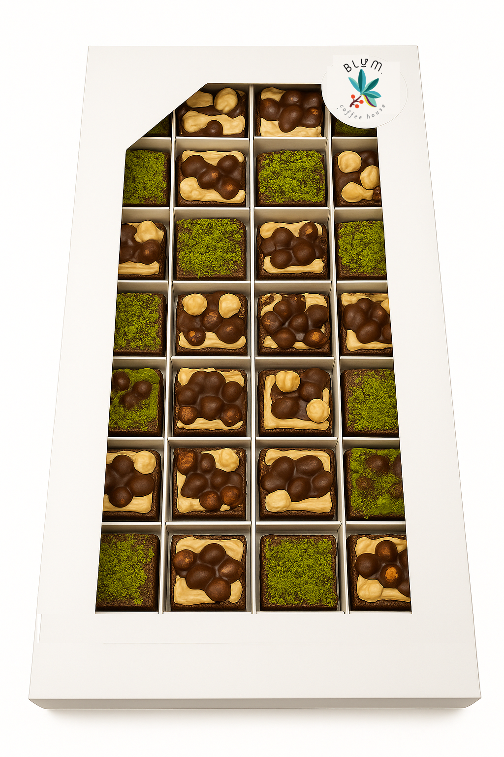 Küçük bir kutunun içinde büyük mutluluklar… Blum Large Brownie Box, çeşit çeşit brownie lezzetini bir araya getirerek her lokmada farklı bir tatlı yolculuğu sunuyor.